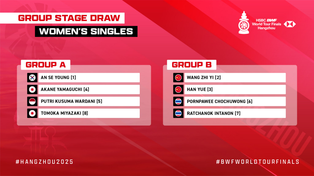 BWF은 13일(한국시간) 중국 항저우에서 2025 월드투어 파이널 조별 예선 추첨식을 진행했다. 이날 행사는 기존의 불투명 볼을 추첨하는 방식 대신, 개최지 항저우의 전통문화를 살려 참가 선수의 이름과 조(A/B)가 적힌 붉은색 접이식 부채를 펼쳐 확인하는 독특한 방식으로 진행돼 눈길을 끌었다.
